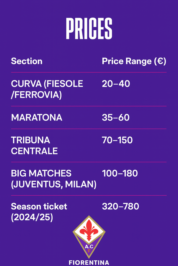 Take the regional train from Firenze Santa Maria Novella to Campo di Marte — a five-minute hop that lands you just 400 metres from the stadium. From there, follow the “purple procession” of fans over the small overpass to the gates.