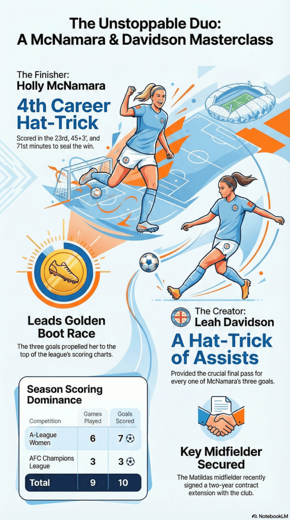 Some matches feel like chapters. Others feel like punctuation. This one, played on a warm Sunday night at AAMI Park, landed firmly in the latter category. A full stop to the calendar year. A composed, almost surgical 3–1 win for Melbourne City, powered by a striker in incandescent rhythm and a midfielder playing the game three seconds ahead of everyone else.