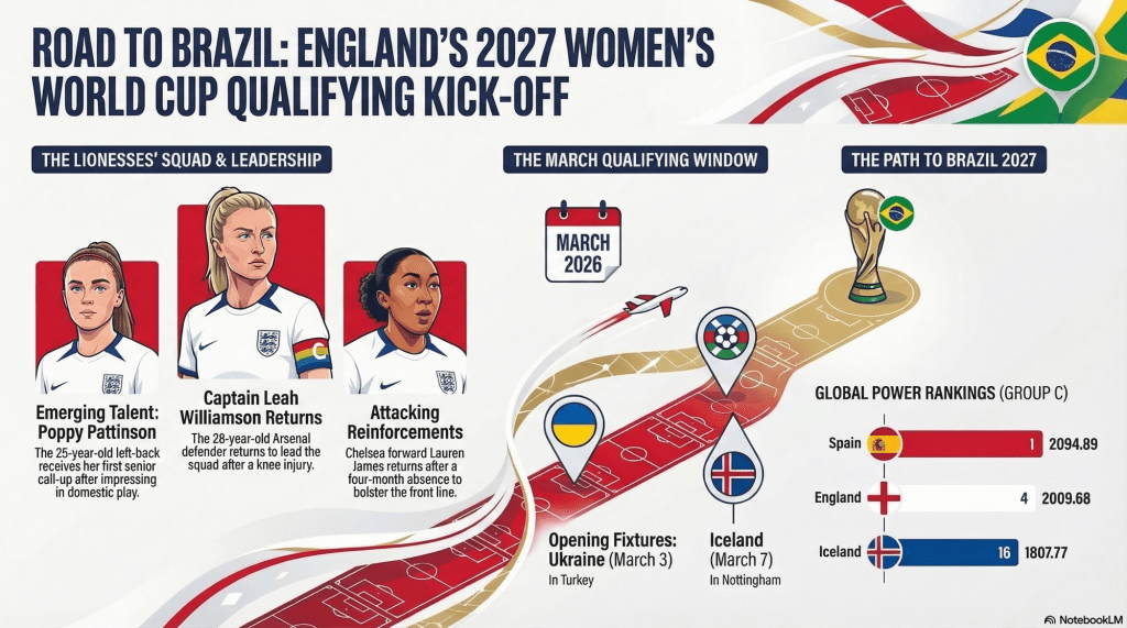 The match is part of the UEFA qualifiers for the 2027 FIFA Women’s World Cup. England must finish in the top two of their group to qualify automatically.